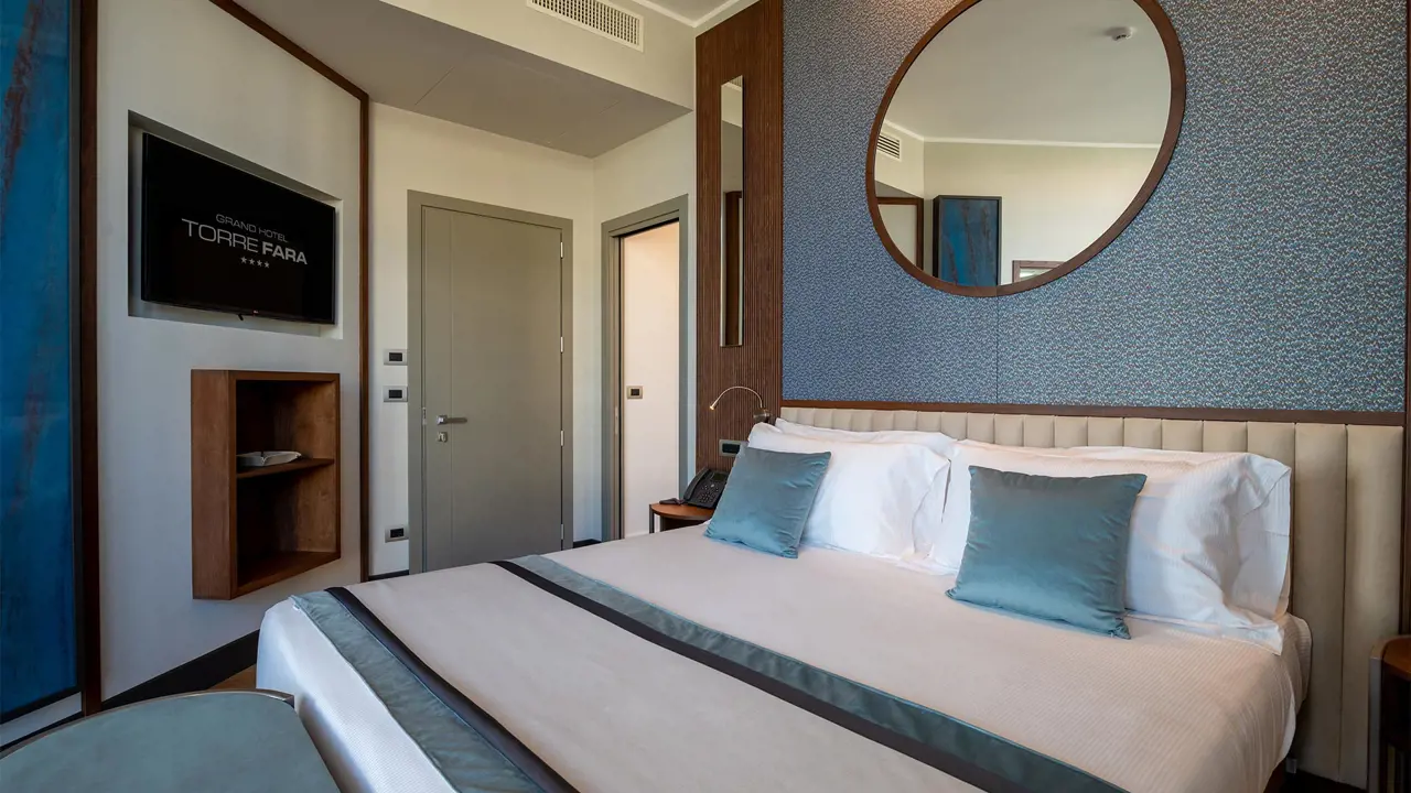 La suite di Grand Hotel Torre Fara è resa unica del suo stile ricercato e dalla sua forma che la rende un vero e proprio oggetto di design.
